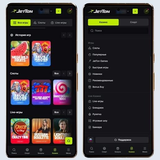 Для владельцев портативных устройств и планшетов реализованы мобильная версия и приложение JetTon Games Casino для телефона. Функционал идентичен десктопной версии. Поддерживаются вся коллекция игр, способы пополнения счета и вывода средств.